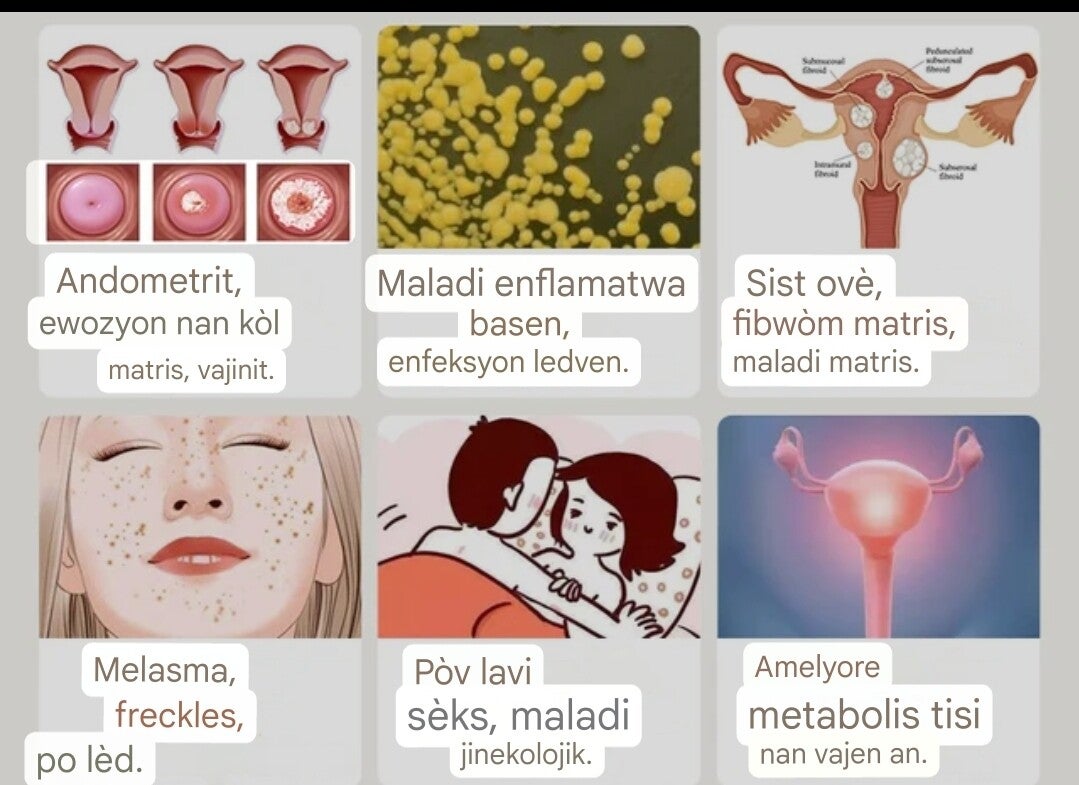 Vaginal infection inflammation crainping fibroid melasma freckles problem sex gastrointestinal amelyore metabolism in the vaginal detox cleaning worm pou moun ki fe maladi bòbòt fibrom,infection gratèl, doulè grèg,kis nan ovè,vant fèmal,emoyid,po led ak bouton, sinti fèmal, pye fèmal,wap bay dlo nn bobot ou, it comes with 3 pills inside the bag 3piece each pills leave it inside vaginal for 3days after removing repeat it same apply again 9days treatment each pills 3days total warnings for adults use only contact Us 754-308-1445